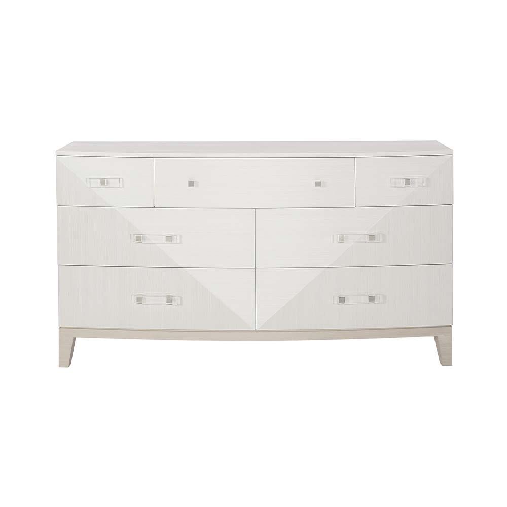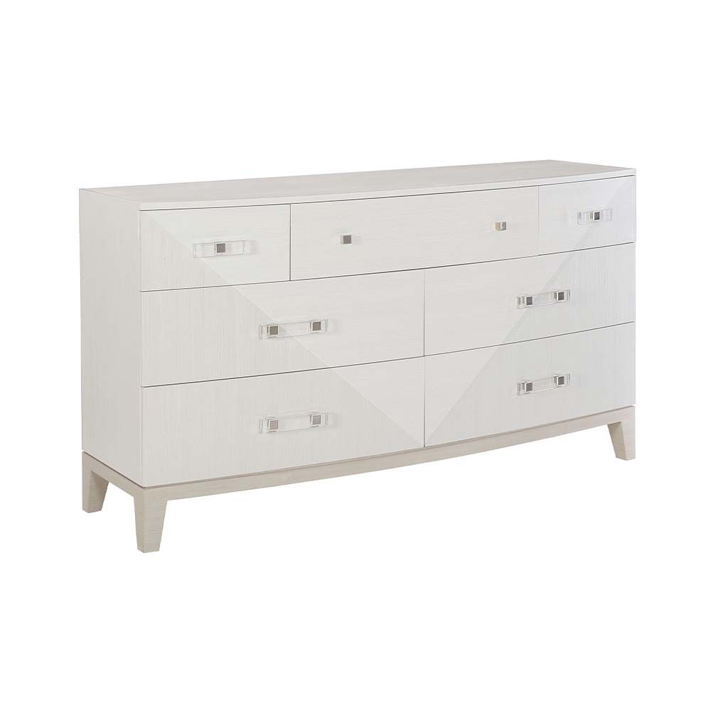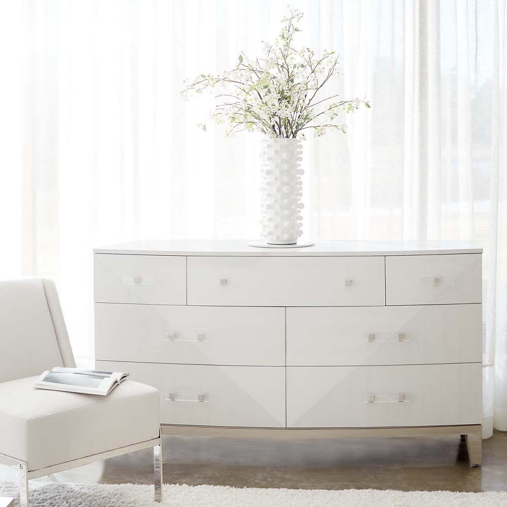 A contemporary design and sophisticated colour choices makes this dresser a one of a kind piece to boast in your home. Let the alternative shapes in its rich, white finish provide your interior with a luxurious feeling. Inspired by geometry and modernism, the Axiom collection is truly one of wonder.Â