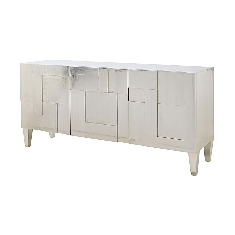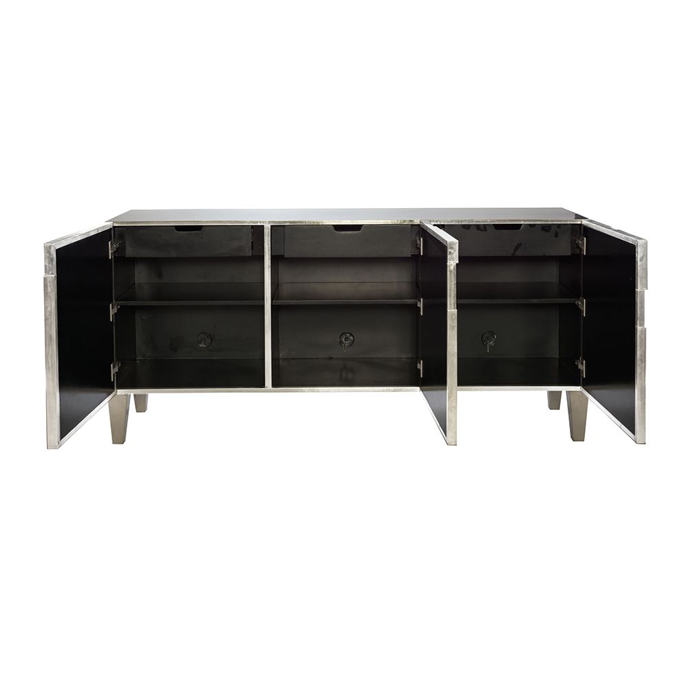 Make a statement in your entertainment space with the luxurious Carleton Entertainment Unit. This dazzling, eye-catching piece features a stunning silver finish that will shine beautifully and unforgivably throughout any living room it is placed in. This lustrous TV base is completed with three large doors which hold internal shelving and drawers, providing an abundance of storage for your living area.