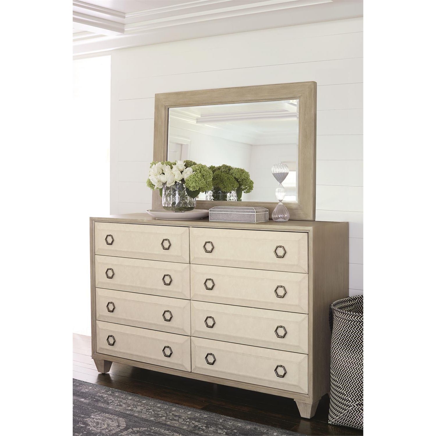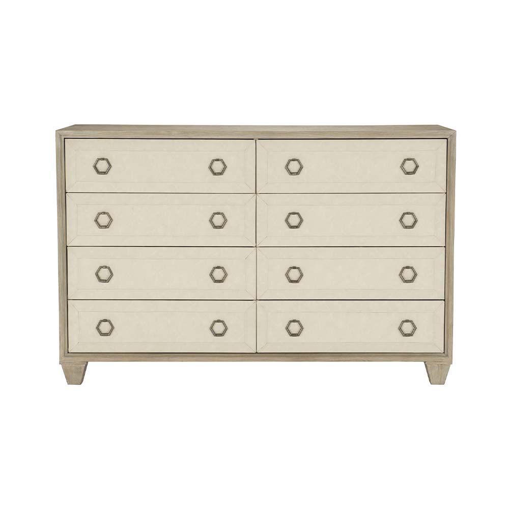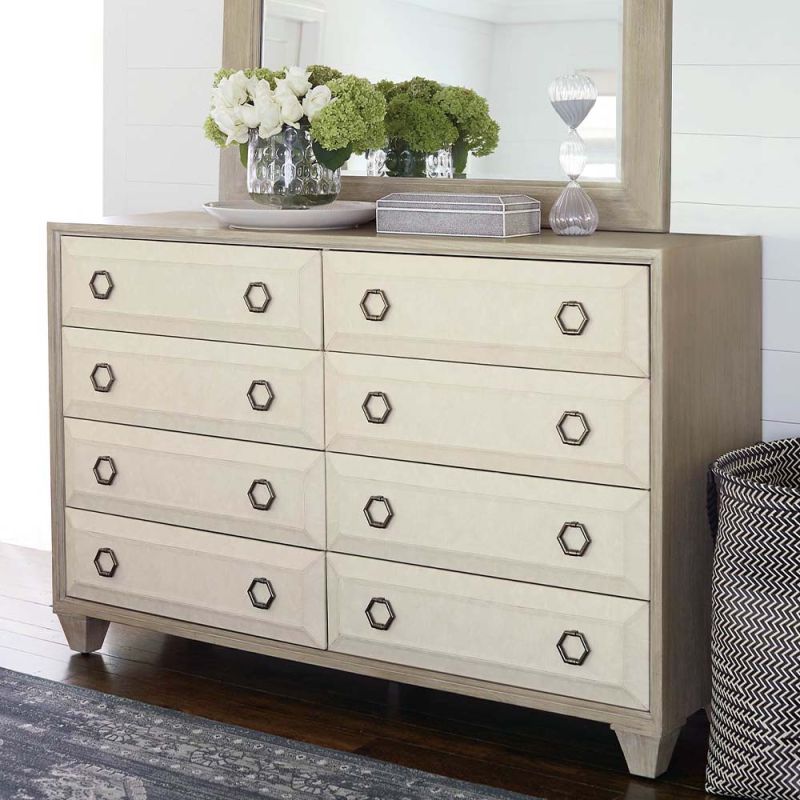 Bring your space together with this absolutely stunning dresser from Bernhardt. Upholstered in a luxurious performance fabric, this dresser has a wonderful and natural appearance through its contrasting materials. It truly is an exquisite example of opulence and luxury within furniture – any chic bedroom would look divine with this.Â