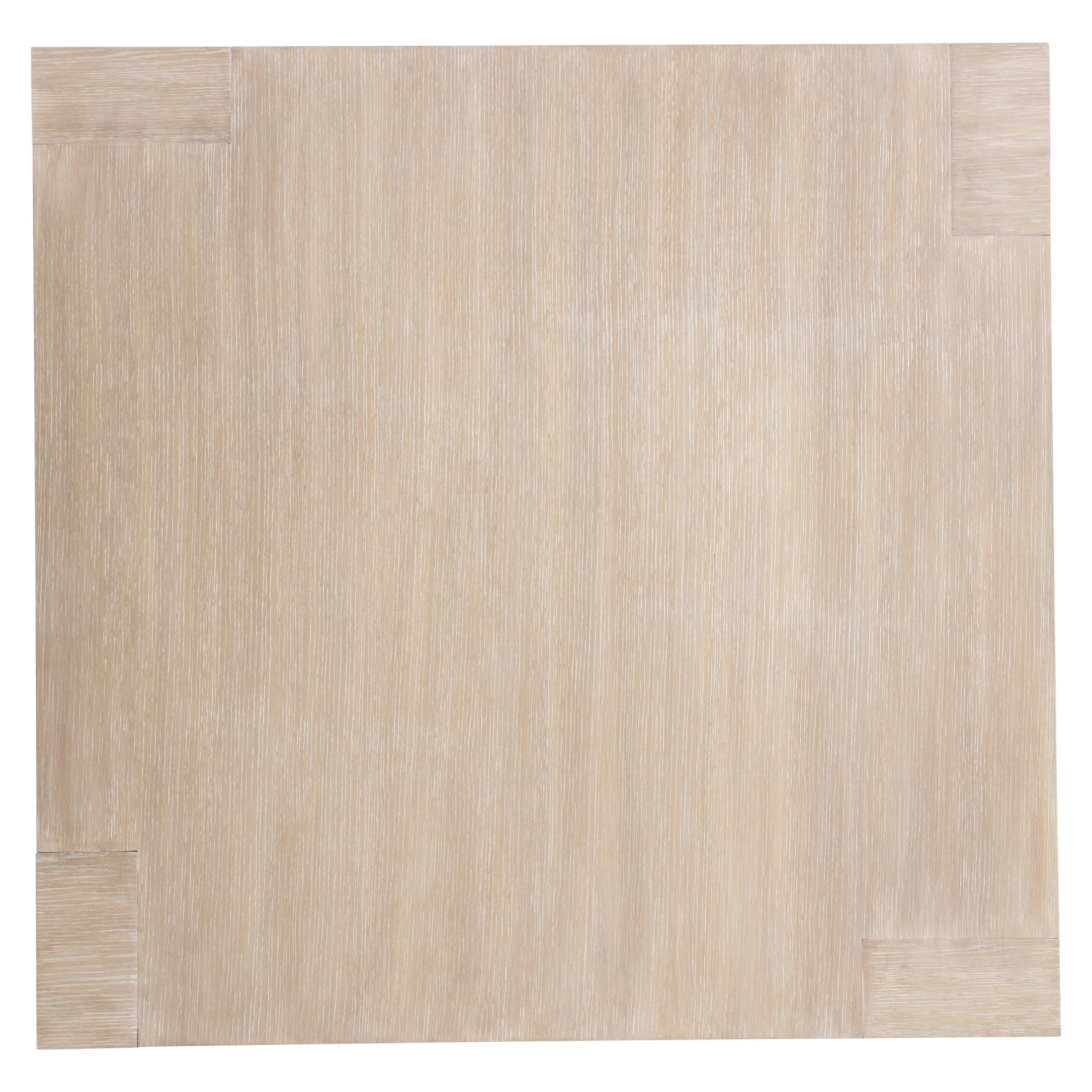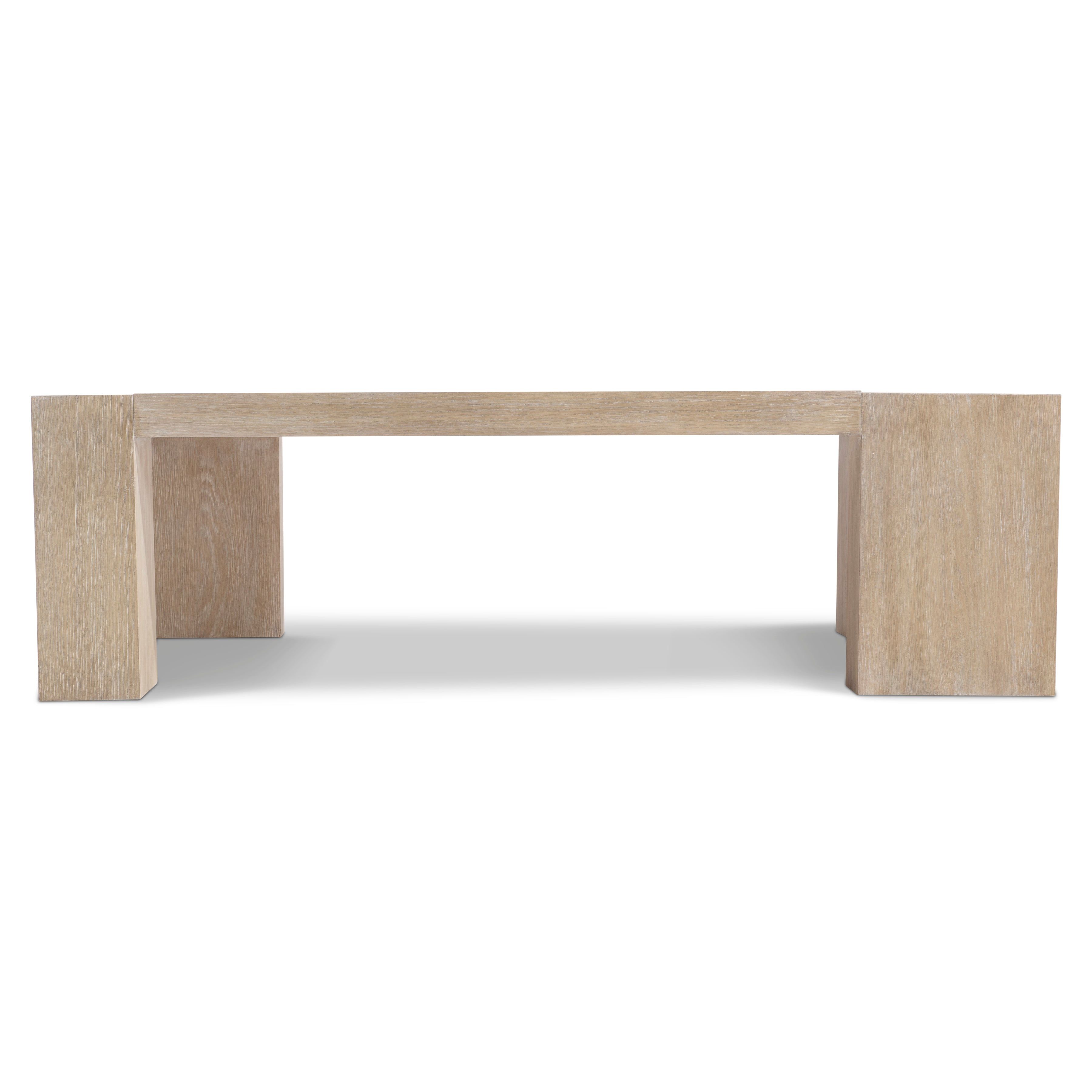 The Darsa cocktail table creates stylish definition in sleek lines and bold shapes. Two legs are formed with wider profiles for a unique asymmetrical design. Wire-brushed oak offers texture.