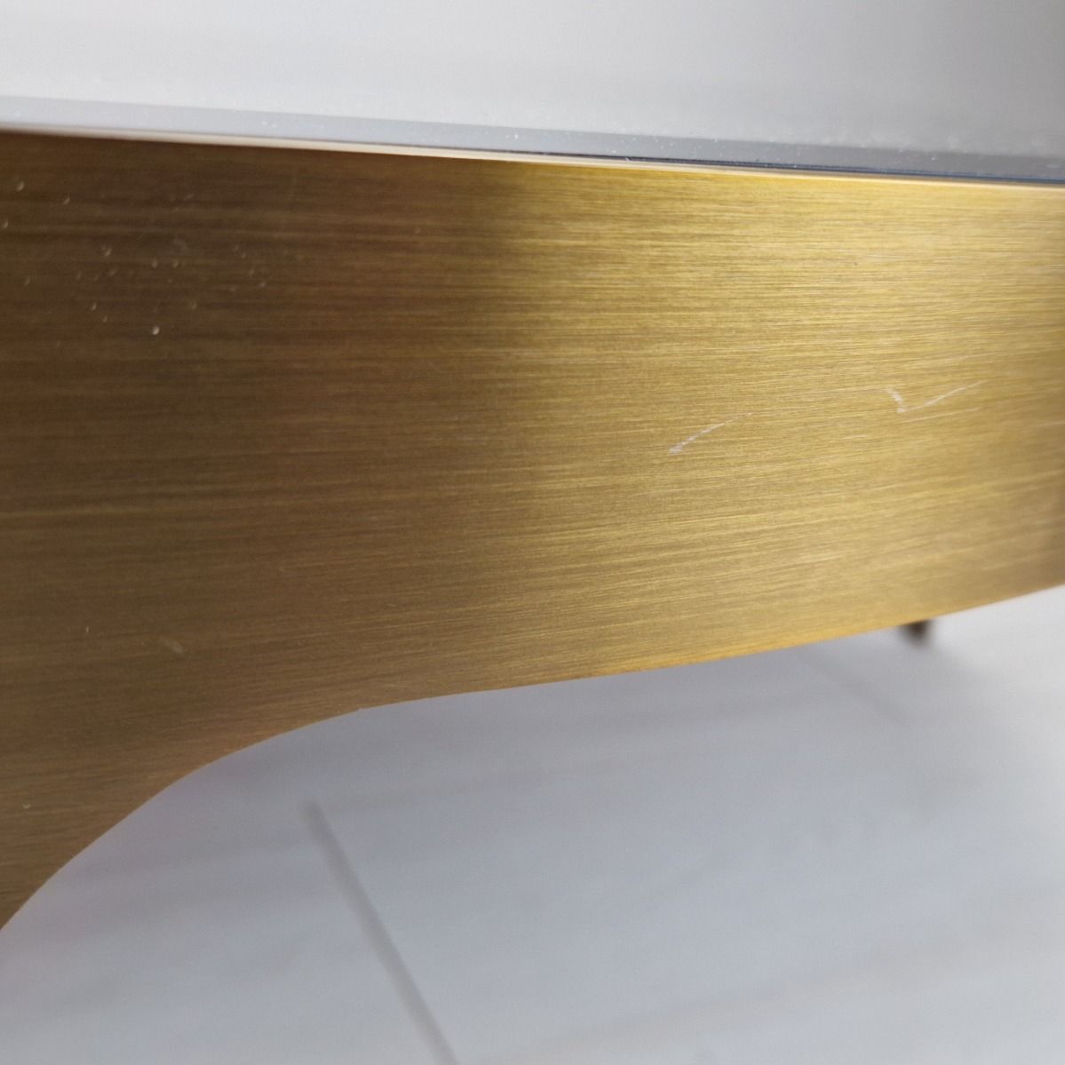 Clearance Item – Sold as Seen Transform your living room with the sleek and contemporary Artemisa Coffee Table. Featuring a brushed brass finish with bronze bar detailing on the legs, this elegant piece enhances the glamorous appeal of a wide range of interior styles.