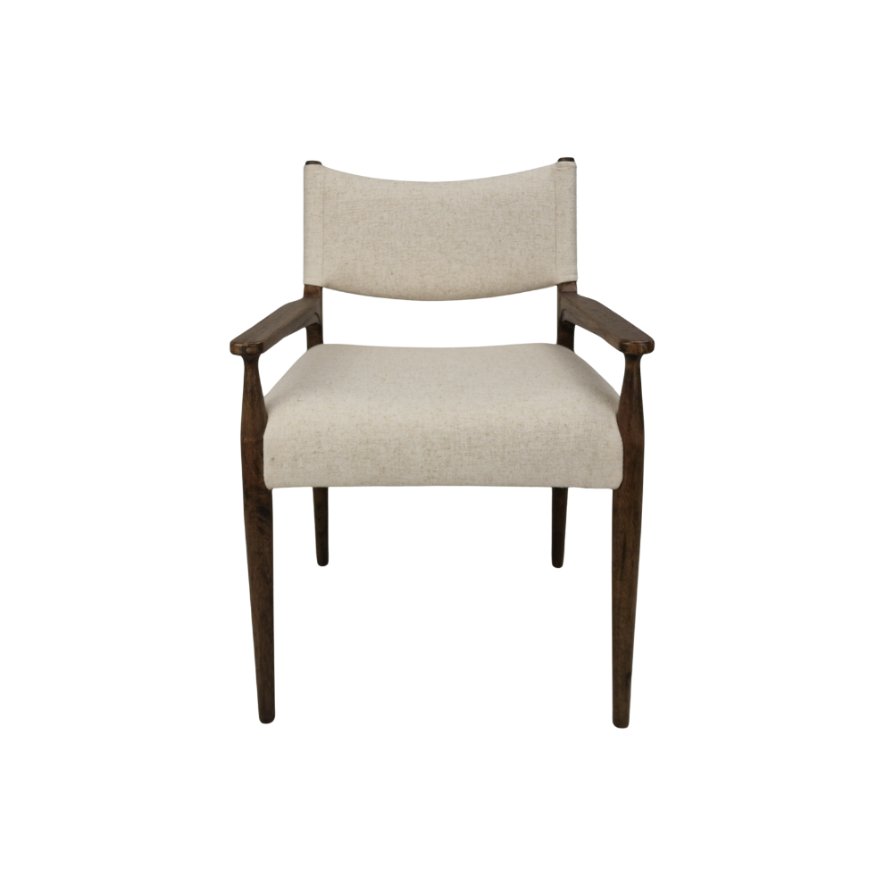 The Woodside Carver Chair seamlessly blends modern design with timeless craftsmanship. Crafted from solid wood with a warm natural finish, it showcases both elegance and durability. Please note, there are some indents on the front of the armrests.