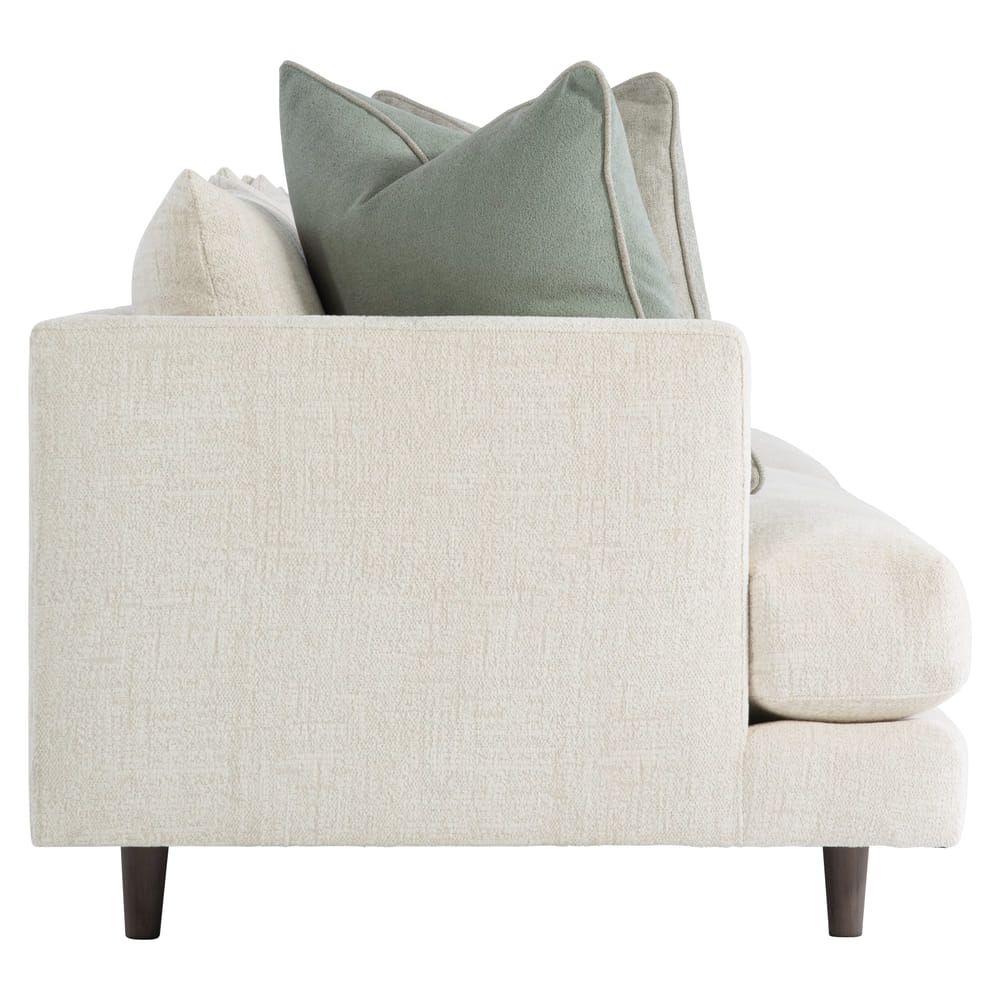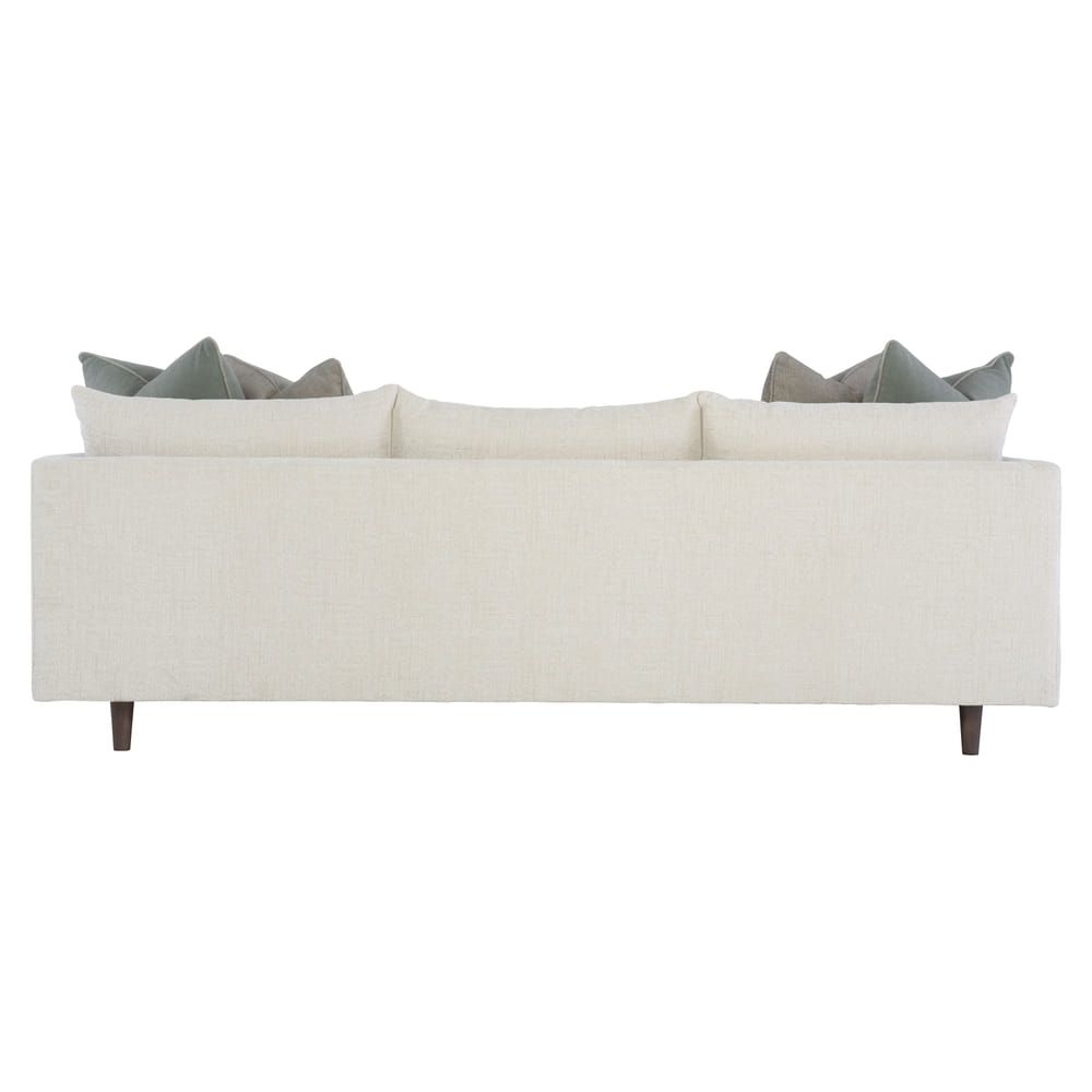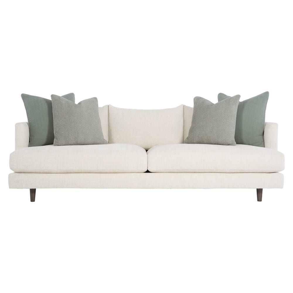 The Colette sofa delivers clean, modern style and high-end comfort. Track arms form a tuxedo silhouette reminiscent of the Art Deco era, while horizontal lines create the stability and length found in contemporary forms. Designed with gracious scale and deep, luxurious seating, it features feather down cushions and three loose fiber back pillows. Tasteful and exquisitely crafted, this sofa elevates the style of any interior.
