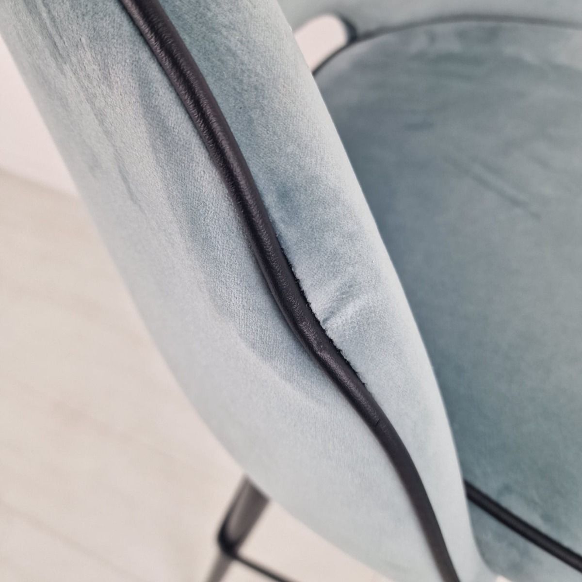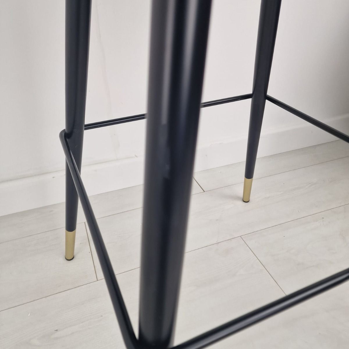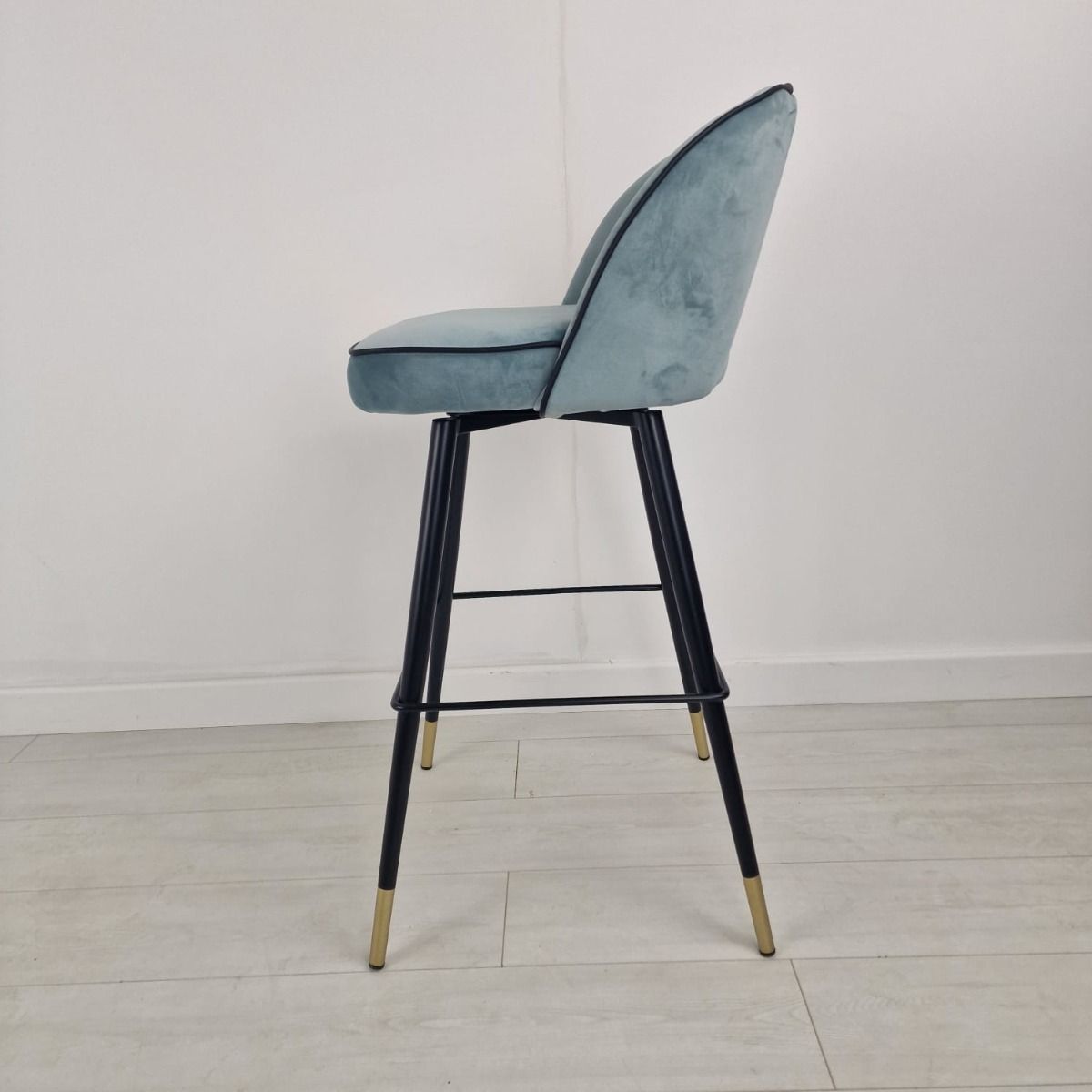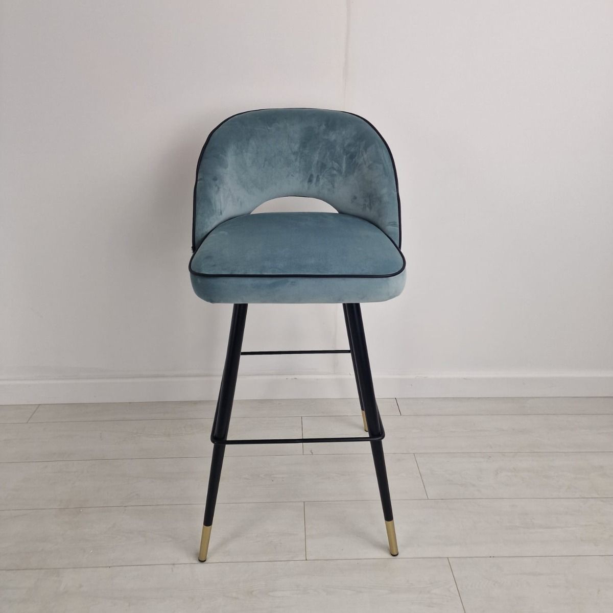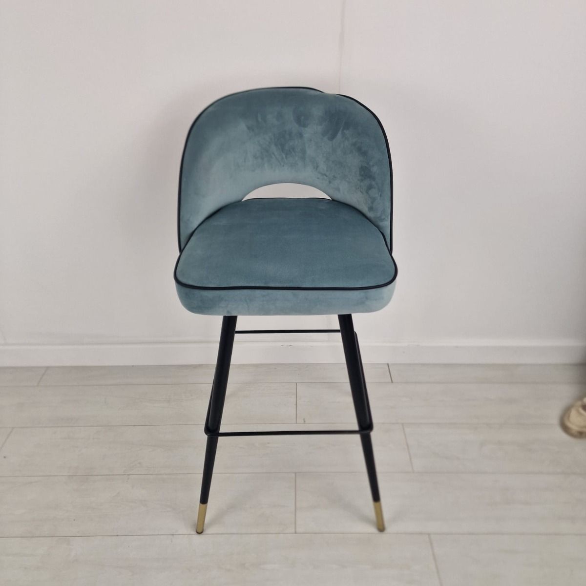 Complete your bar space décor with the elegant Cliff Bar Stool, featuring plush blue velvet upholstery, a swivel base, and...