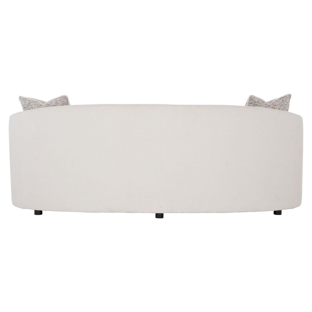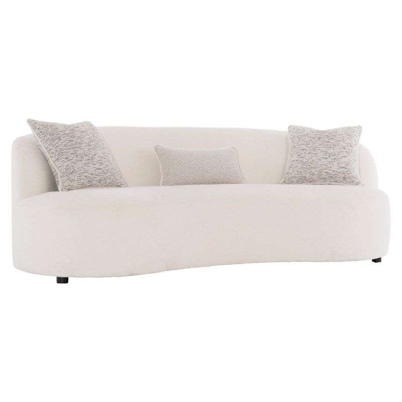 Sinuous curves and luxurious upholstery give the Elle sofa a cloud-like softness. Inspired by a traditional kidney-shaped design, the encircling back sweeps around to create a sheltering effect. The seat flows to the floor, allowing just a peek at the four feet.