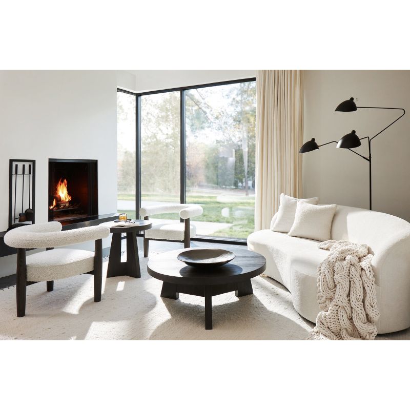 Sinuous curves and luxurious upholstery give the Elle sofa a cloud-like softness. Inspired by a traditional kidney-shaped design, the encircling back sweeps around to create a sheltering effect. The seat flows to the floor, allowing just a peek at the four feet.