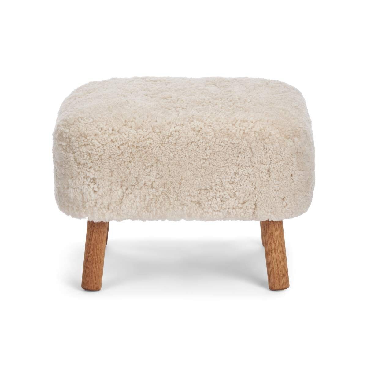 Enhance your comfort experience with our Emily Foot Rest Stool, designed to complement the Emily Armchair. It is upholstered in the same exquisite short wool lambskin pelts from New Zealand and features sturdy legs in oak or walnut.