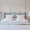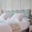 Elevate your space with this beautiful new addition to Handmade in London! Made by us, this uniquely chic and fabulous design boasts a captivating, coastal-inspired wavy headboard with defining piping.