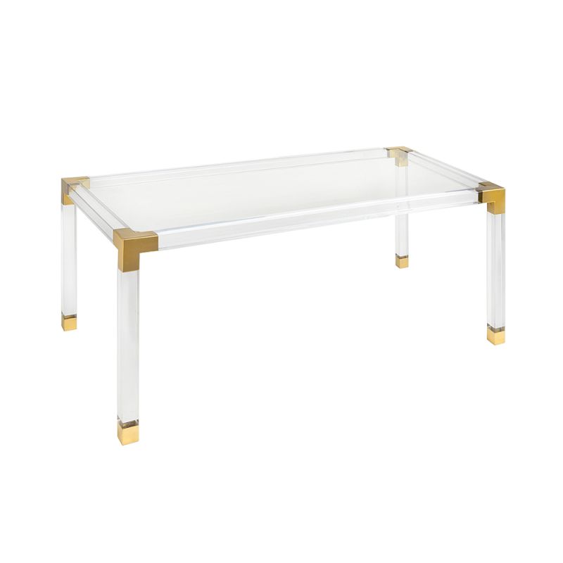 Made from luxurious clear acrylic and brushed brass accents, the Jacques Dining Table combines modern simplicity with traditional glamour to create a gorgeous dining table that will complement all interior styles.