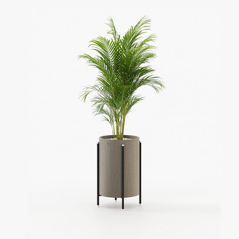 This sleek and modern flowerpot is designed to elevate your decor and provide your space with an element of sophistication. Pictured in an elegant aged oak matte finish and featuring metal rod raised legs, this stunning flowerpot is sure to enhance the feel of your space and perfectly adorn a variety of contemporary or mid-century-inspired interiors.Â
