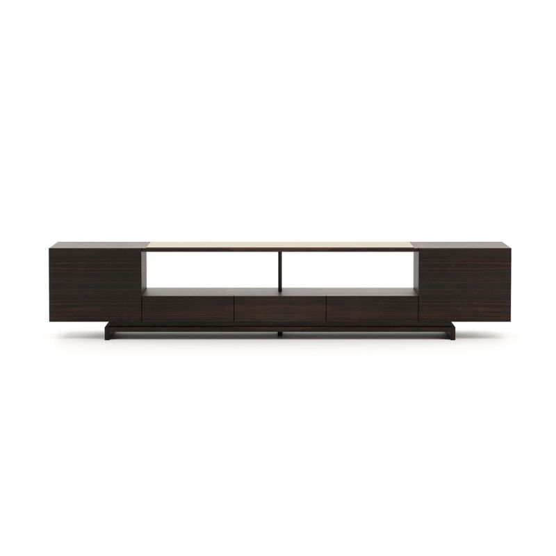 Introducing the Sea Storage Unit by Laskasas! Crafted from smoked eucalyptus wood, this simple but chic piece is a great choice for adding a touch of contemporary elegance to any living space. Item has scratches and dents on centre shelf, interior of right cabinet, right foot and a few marks on the shelves within the cabinets (please see the photos)