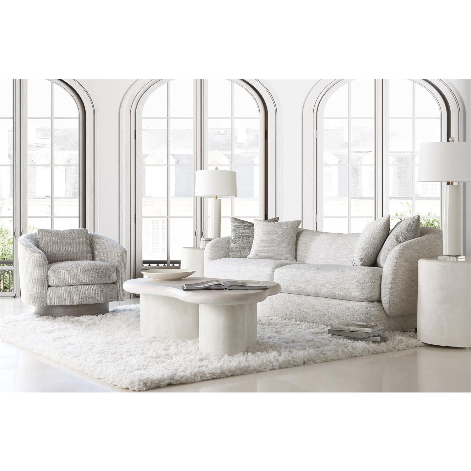 The back of the Margot sofa curves to create embracing shelter arms for a comforting design. Two deep seat cushions and tight back upholstery offer tailored details. Two complementary throw pillows and round feet complete the modern styling.