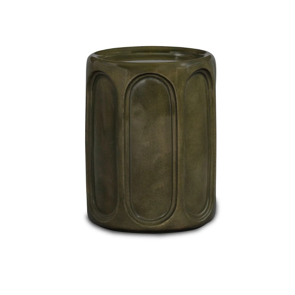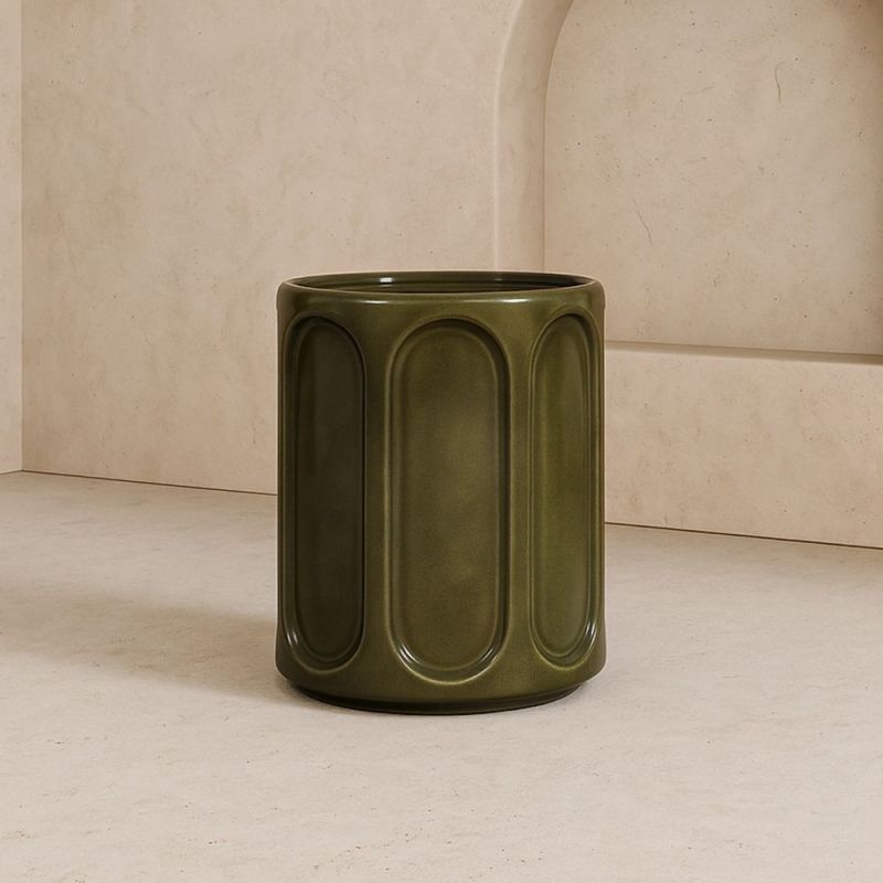 Earthy and sculptural, the Oka Side Table in Olive Glazed finish radiates artisanal charm. Its rich brown-olive tones and smooth enamel surface catch the light softly, creating depth, warmth, and visual interest. Crafted in versatile concrete, it is suitable for both indoor and outdoor settings, making it a beautifully refined addition to interiors that celebrate organic character with a contemporary edge.