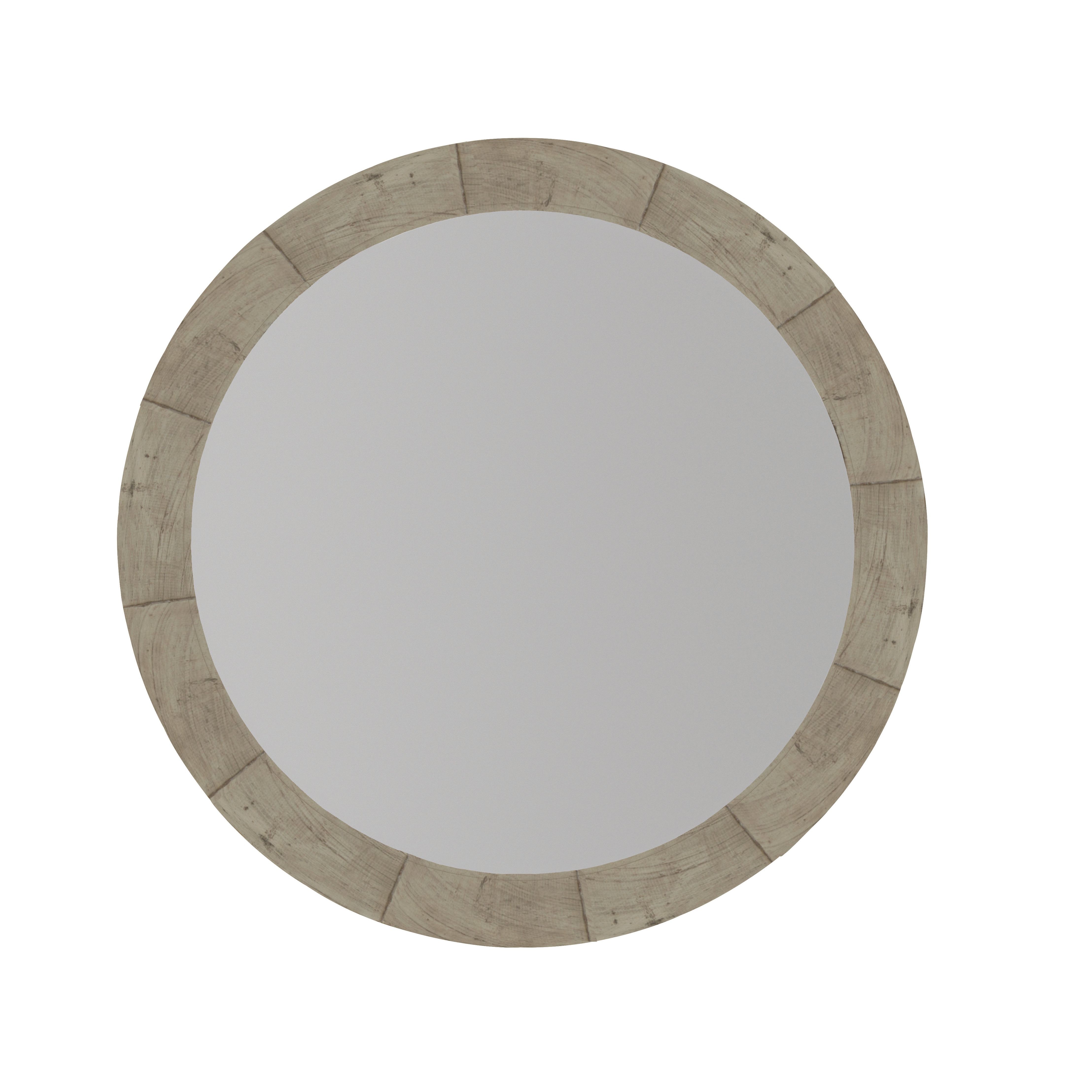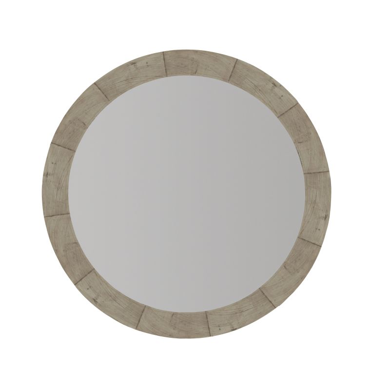 The Highland Park collection, part of Bernhardt’s eclectic Loft brand, blends the best features of farmhouse and mid-century design, with a one-of-a kind appeal and laid-back vibe. The round Piper mirror has a winning hand-made farmhouse look, created by a wooden frame composed of planks of varying thickness. Its non-beveled mirrored glass creates a sleek contrast. Available in both a morel and brushed white finish.